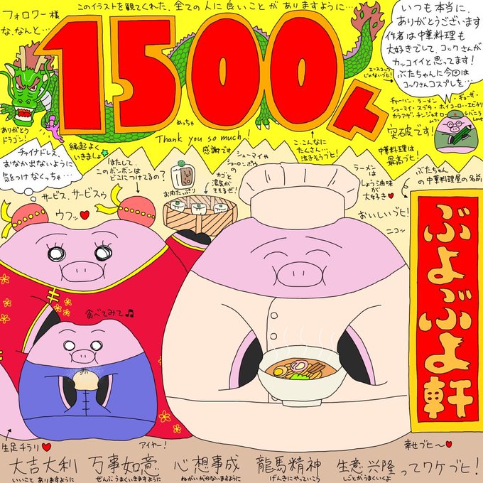ばかぶたちゃんのフォロワー様が1500人突破しました🐽✨フォロワー様と、観てくださった皆様に感謝です🙏 これからも何卒よろしくお願いします🙇♂️ #illustration #イラスト好きさんと繋がりたい #絵描きさんと繫がりたい #町中華で飲ろうぜ #ばかぶたちゃん