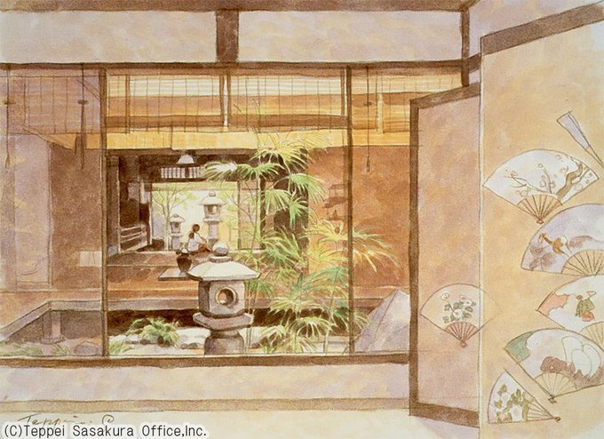 🌟原画(#アクリル淡彩)を展示中 笹倉鉄平 Teppei Sasakura 『坪庭のある暮らし~Machiya Life in Summer~』 2009年 #日本🇯🇵 #京都 笹倉鉄平ちいさな絵画館 kaigakan-teppei.net #笹倉鉄平 #アート #アート好きな人と繋がりたい #京都好きな人と繋がりたい #町家好きな人と繋がりたい #町家