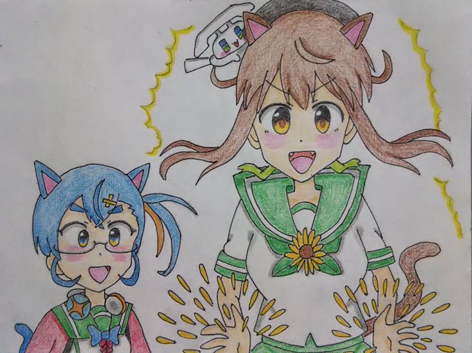 卒業した #町田たん と 新しく爆誕した #八尾たん が、 #さっぽろたん に挨拶に来てくれました。 八尾たんはもらい泣き。🐈️ #ビッカメ娘 ( #ナイセン ) #ビッカメ娘を描き隊 #ファンアート #色鉛筆 #絵描きさんと繋がりたい twitter.com/bic_sapporo/…