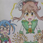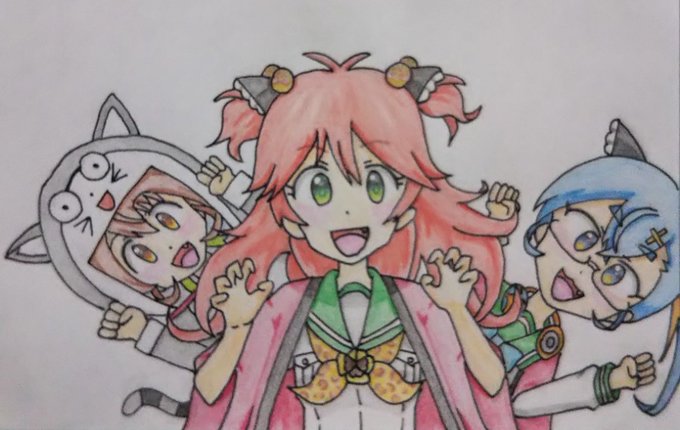 1日早いですが… #3月1日は町田たん擬人化4周年 #町田たん 、おめでとうございまーす!🎉🎉🎉🎂✨🎁✨ (*🍖ノ゚Д゚)八(👓️*゚Д゚*)八(゚Д゚*🐈️)ノィェーィ!← #さがみたん 家でお祝いですね!(≧∇≦)b #ビッカメ娘 ( #ナイセン ) #ビッカメ娘を描き隊 #模写 #色鉛筆 #絵描きさんと繫がりたい