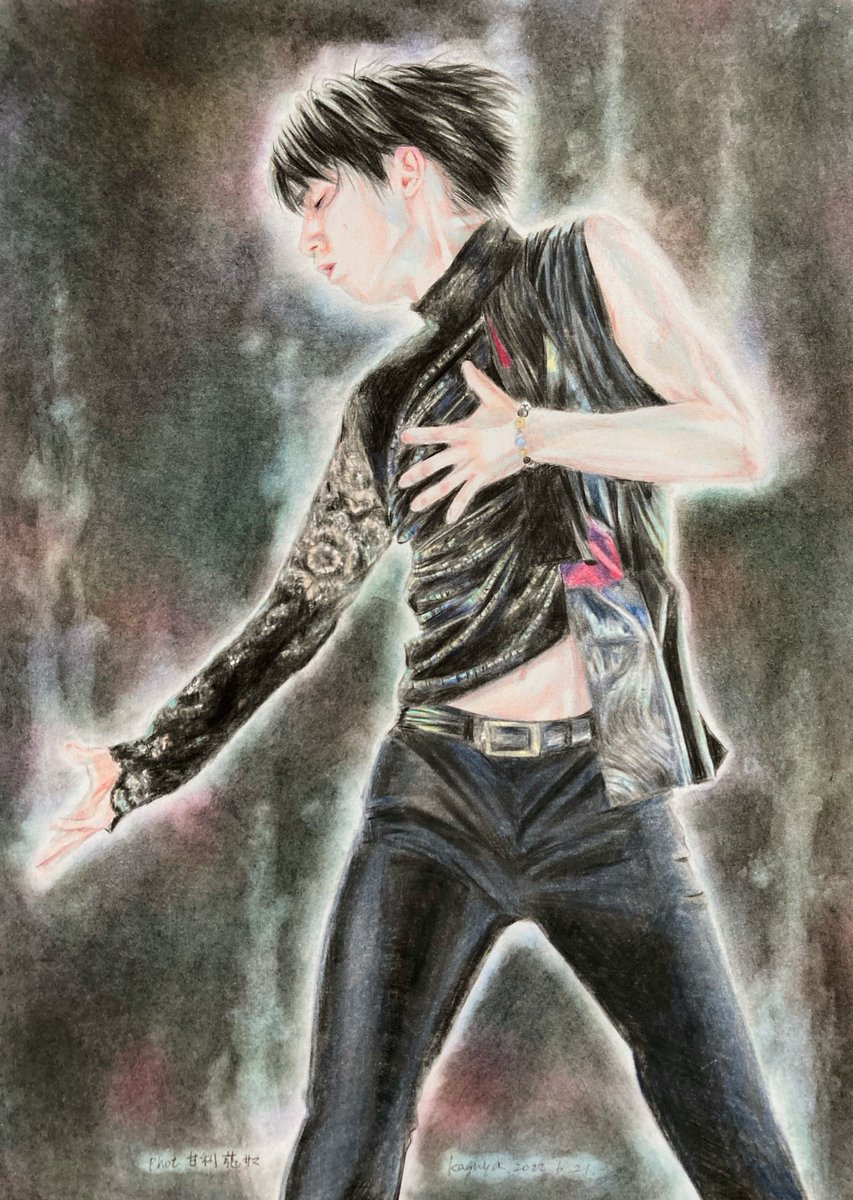 #FaOI神戸2022 #略奪 やっと完成しました☺️🍀 雰囲気出せてるかしら… (; ・`д・´)ゴクリンコ (背景2回描き直しました…) #YuzuruHanyu𓃵 #羽生結弦選手が今日も元気で幸せでありますように #色鉛筆 油性色鉛筆とパステルにて