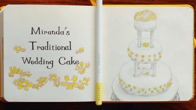 ミランダの伝統的なウエディングケーキ🎂💒 黄色と白を基調としたミランダらしい可愛いケーキでした🌸 メアリーが、自分が選ぶとしたらミランダのケーキね!と言っていた時のミランダの笑顔が素敵でした😊💖 #ブリティッシュベイクオフ #TheGreatBritishBakeOff #season1 #番外編 #イラスト #cake