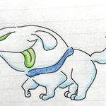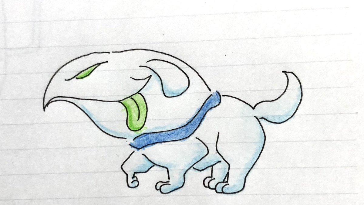 番犬ちゃんです。 幽霊犬のようにも見えるけど普通に触れるしめちゃ温かい。 威嚇状態のコイツに舐められるとその箇所が石化する。らしい #イラスト好きさんとつながりたい #絵描きさんと繋がりたい #オリキャラ #犬 #番犬 #石化