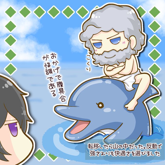 【🐬10巻】転移したら山の中だった。(略)517話【1月10日発売🐬】 kakuyomu.jp/works/11773540… 『ぐいぐいくるセイカイさん(イルカの方)』 な感じで描いてみた🖌️ #異世界に転移したら山の中だった #イラスト #ノリの良い髭の方