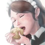 今日の20分ドローイング!✍ 飯テロアニメ「 #異世界食堂2 」2話より、昨日のアーデルハイド皇女殿下に続いて、一緒にシュークリームをパクつくメイドのハンナさんを描きました😋 #絵描きさんと繫がりたい #イラスト好きさんと繋がりたい
