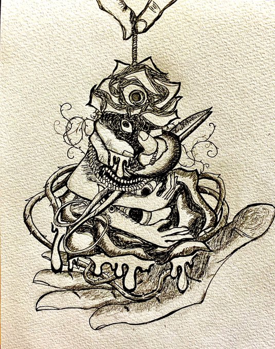 5/24 2023 たまに起きてくる気持ち悪い絵描きたい欲2 #絵 #落書き #イラスト #イラストレーション #ドローイング #illust #illustration #drawing #ボールペン #筆ペン #水彩 #白インクペン #異形 #モノクロ #instagram instagram.com/p/Csoa2-CPmky/…