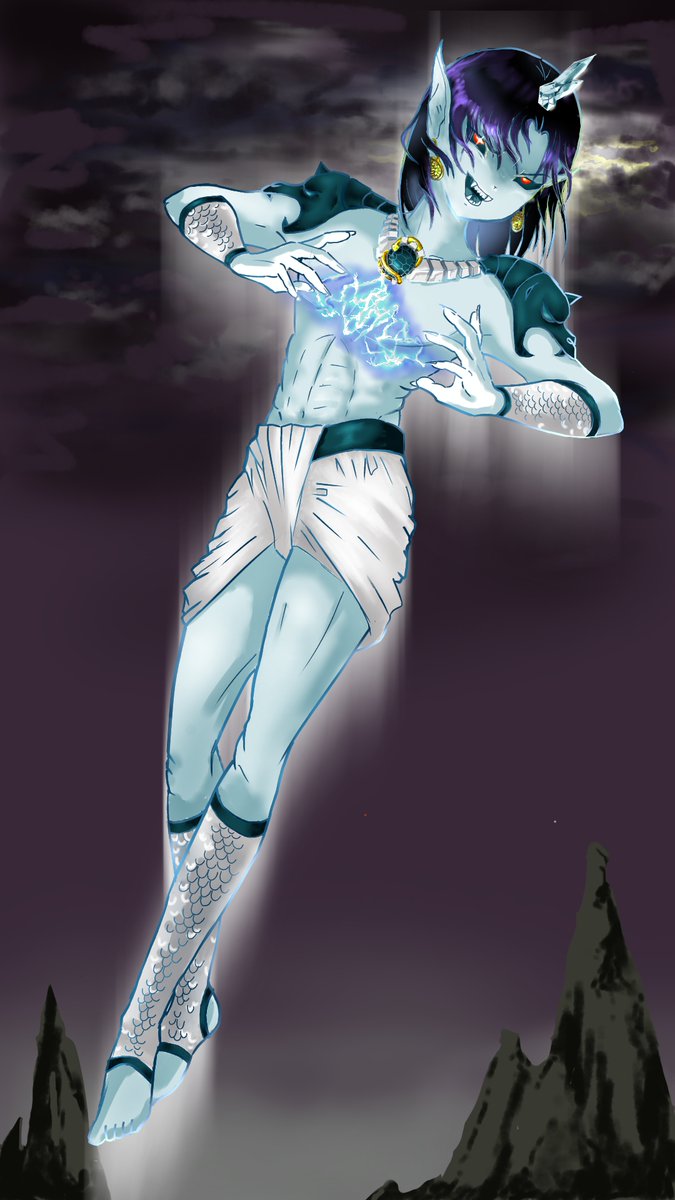 久々の自由作品。 コンテストと違い本性を発揮できました😅 タイトル「凍つく餓鬼」 #WorldA_RT #V_ividcollar #イラスト #異界 #ファンタジー #鬼 #オリジナル #アニメ塗り