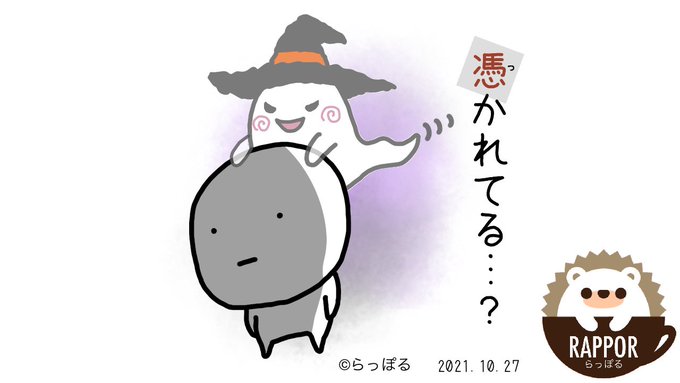 のか? ってゆーくらい疲れる。 #憑かれる #疲れる #ハロウィン #helloween #イラスト好きな人と繋がりたい #LINEクリエイターと繋がりたい #フリーランスと繋がりたい #ゆるいイラスト #らっぽる