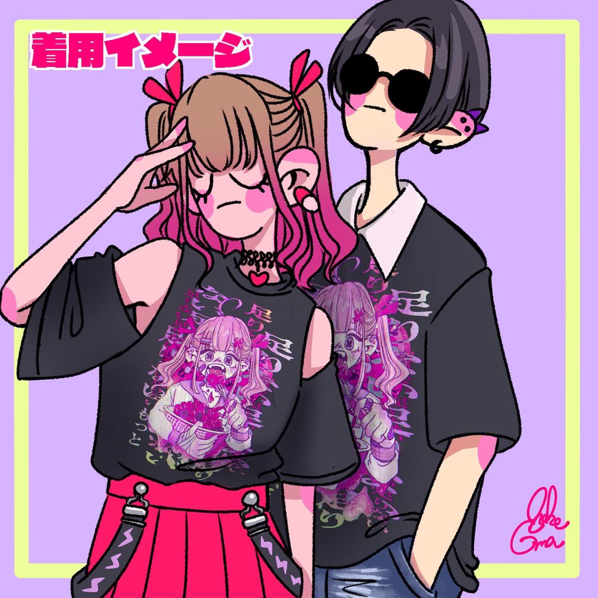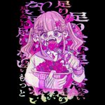#病みかわいい展 に参加させて頂きます💜 二枚目着用イメージです! 商品化出来ますように🤲 さよなら、現世。こんにちは、来世。 下記URLから応援よろしく! captors.me/p/beac36bbd8/ #イラスト好きな人と繋がりたい #絵描きさんと繋がりたい #メンヘラ女子