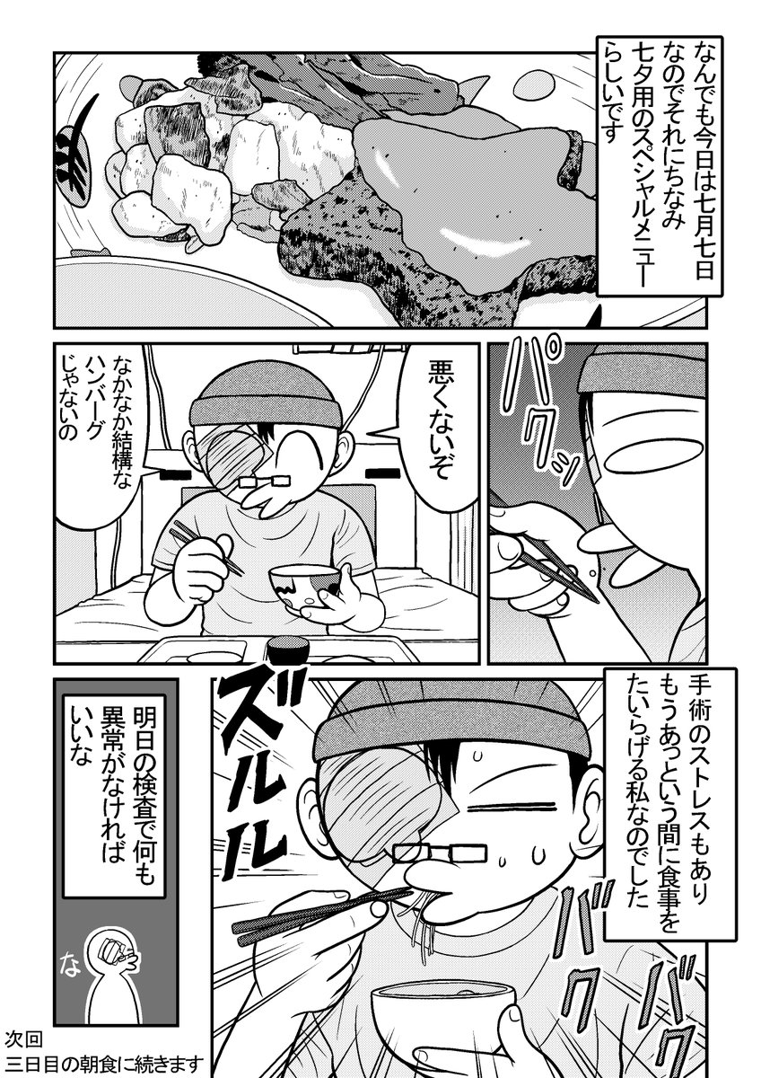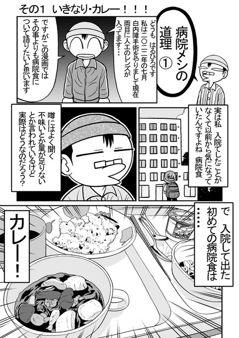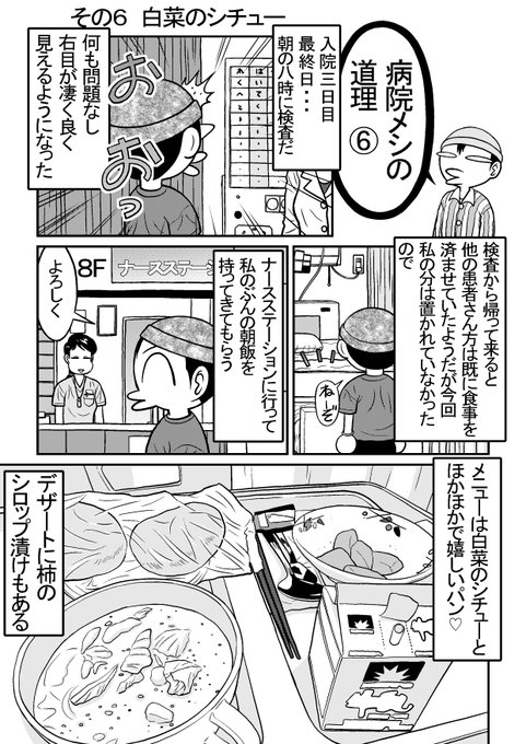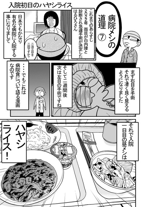 病院メシの道理その⑤七夕ハンバーグ pixiv.net/artworks/10807… 病院メシの道理その⑥白菜のシチュー pixiv.net/artworks/10827… 「病院メシの道理」その⑦ハヤシライス pixiv.net/artworks/10850… #エッセイ漫画 #まじから #病院食 #白内障手術