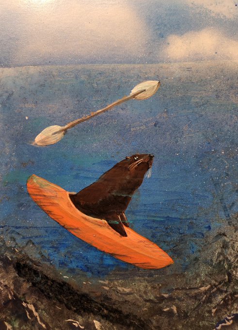 「届かぬ思い」😂 (トド、カヌー重い) #イラスト #イラストレーター #art #japaneseart #アート好きな人と繋がりたい #癒しの輪を広げよう #トド #オリキャラ #オリジナルイラスト #芸術の輪 #拡散RT希望 #カヌー #ギャグアート #癒し系