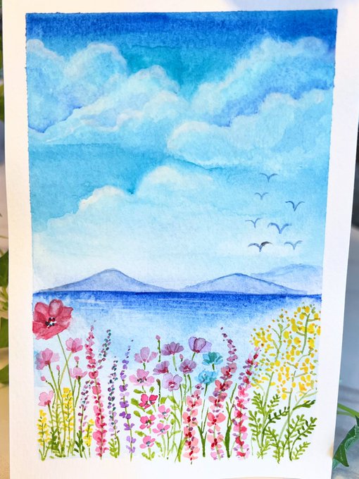 最後のゆったりタイム…🌸🖌 今週もお疲れ様でした✨✨ #春の創作クラスタフォロー祭り #春色 #癒しの輪を広げよう #水彩画 #みんなで楽しむTwitter展覧会 #絵描きさんと繫がりたい #色彩に癒される