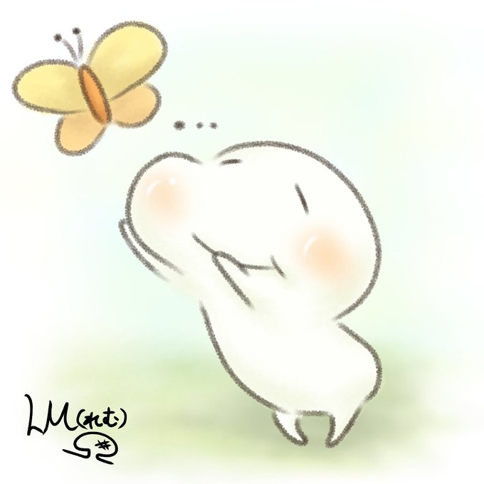 22/7/18 ちょうちょしゃーんっ🦋 待ってなの〜っ💨 今日も元気に原っぱをかけまわるおもちです☀️ #おもちの日々 #ちょうちょ #お餅好きと繋がりたい #お餅 #ゆるいイラスト #ゆるキャラ #癒し系イラスト #和菓子 #みんなで楽しむTwitter展覧会 #絵本作家 #NFTartist