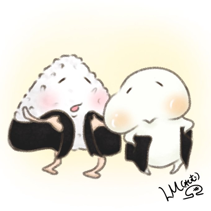 22/8/18 おもちの #キッチンでで出会ったよ 🍽 おにぎりしゃんがいたよ🍙 一緒に海苔を着てみたのっ♪ なかなかくっつかないのね💨 #おもちの日々 #おにぎり #お餅好きと繋がりたい #お餅 #ゆるいイラスト #ゆるキャラ #癒し系イラスト #和菓子 #みんなで楽しむTwitter展覧会 #絵本作家 #NFTartist