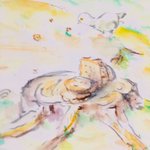 イオン尼崎店のフードコート展示作品より🍦 #ヘンゼルとグレーテル #グリム童話 #白い鳩 #ライ麦パン #絵描きさんと繋がりたい 2人が2回目捨てられた時 お家にちゃんと戻れるように ヘンゼルが細かく撒いたパンが 鳩に食べられるというシーンから連想しています🥐