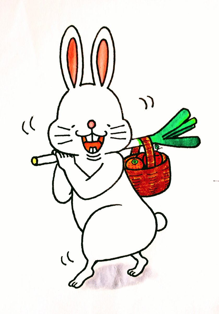 こんにちは!🌈👀 前歯うさぎさんです🐰🥕 【あっしが運びやすっ!! ~えっさ~ほいさ~】 #イラスト #前歯うさぎ #イラスト好きさんとつながりたい #絵描きさんと繋がりたい #絵柄が好みって人にフォローされたい #illustration #art #design #カゴ #白ネギ #えっさ~ほいさ~ #みかん #りんご