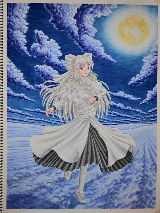 過去絵再投稿 2019年10月、2020年2月完成 #メルブラ の #白レン と #黒レン を水彩色鉛筆で対になるように描きました。 #絵描きさんと繋がりたい #絵柄が好みって人にフォローされたい