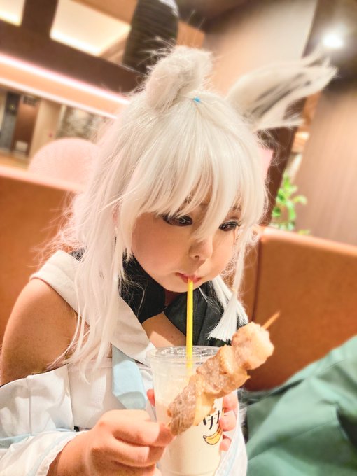 くいしんぼうふぶきちゃん🤭 体力限界なので、また明日以降、ご挨拶とかお写真お待ちください〜😭💦 おやすみなさいませ〜💗皆様お疲れ様でした☺️ #白上フブキ #白上フブキコスプレ #ホロライブ