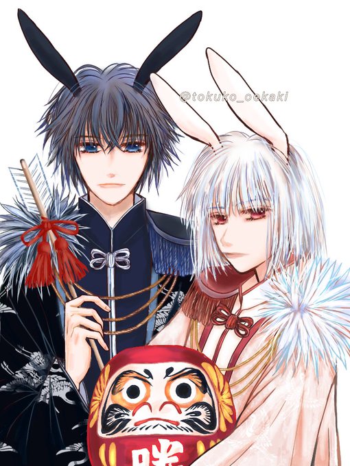 #年賀イラスト2023 #オリジナルイラスト #オリジナルキャラクター #白兎 ハガキサイズのアナログ画を #CLIPSTUDIO で加工修整しました。 この兎はアルビノってコトになるのかな。