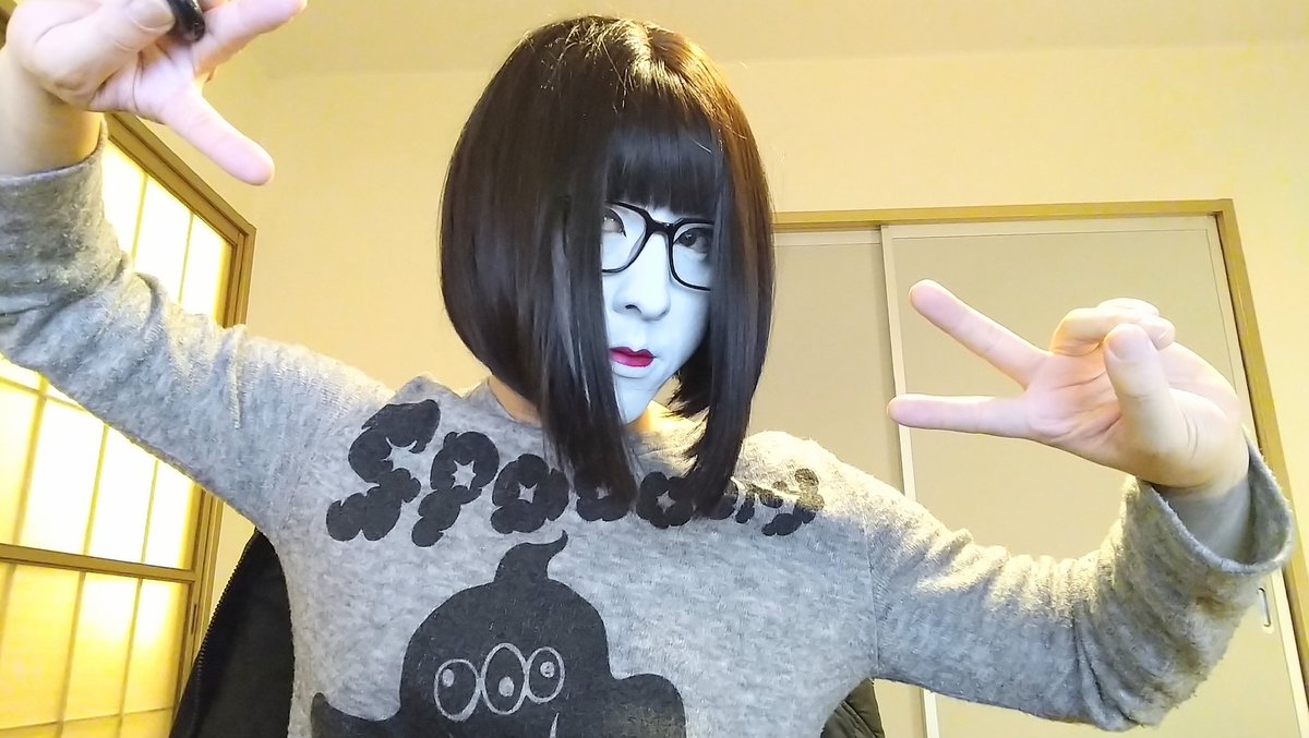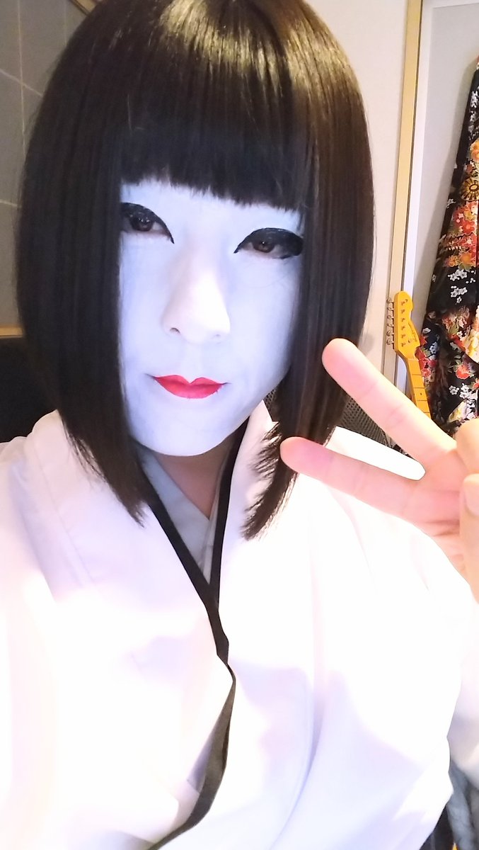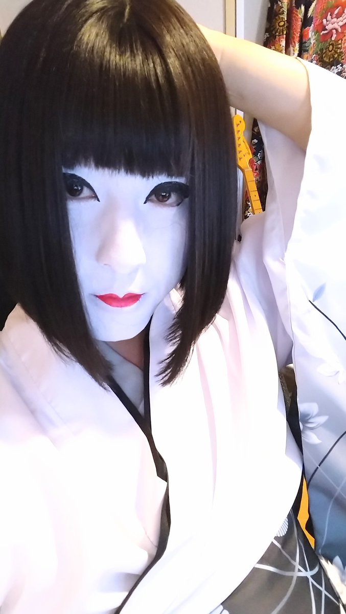 ある所で私の姿を見た女性が「めちゃ綺麗で羨ましい!!」と言ってくれました!!嬉しいなぁ🤗 #コスプレ初心者さんと繋がりたい #コスプレ #白塗り #メイク #tシャツ #じどり晒すとフォロワー増えるって聞いたんですが #ギター