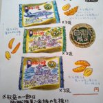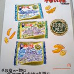 有難い事に御注文でお描きしましたイラストを綺麗にラミネートして貰いPOPとして #白壁兵舎広報史料館 さんの売店にて飾って頂いております!皆、大好き #亀田の柿の種 は売り切れだそうで…入荷をお待ちくださいませ!(*`・ω・)ゞ #イラスト #新潟 #自衛隊 twitter.com/shop_shirakabe…