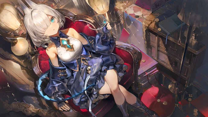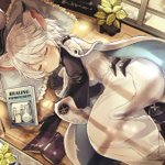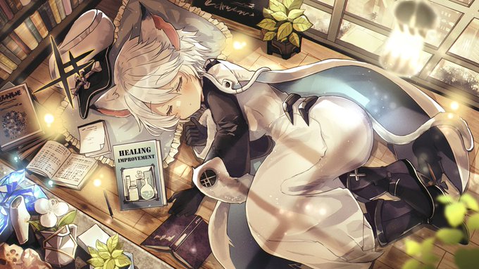 白夜極光(@AlchemyStarsJP)リリース半周年記念イラストを描かせていただきました✨ たくさんの本や植物に囲まれてゴロゴロ昼寝するフィリスちゃんです。耳と尻尾がもふもふ可愛い!ハーフアニバーサリーの新イベントで登場のベツレヘムもとても可愛いです! #白夜極光 #白夜極光ハーフアニバーサリー