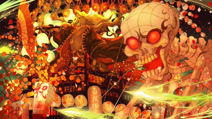 【白夜極光】リリース半周年おめでとうございます。 カロン様和装&お祝い和風お祭りver🎉イラスト描かせて頂きました。 長官ならド派手に祝砲打ち上げるはず!新イベントも楽しみにしています。 @AlchemyStarsJP #白夜極光 #白夜極光ハーフアニバーサリー