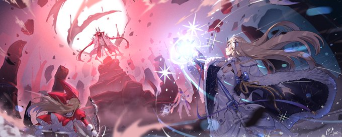 白夜極光、半周年おめでとうございます!! 今後も新しいイベントや、魅力的な光霊たちが見れることを楽しみにしております! いつもお世話になっているスナイパー組 (バイス・ミジャード・ネイルス・ラス)と サポーターのユーライアを描いてみました。 #白夜極光 #白夜極光ハーフアニバーサリー