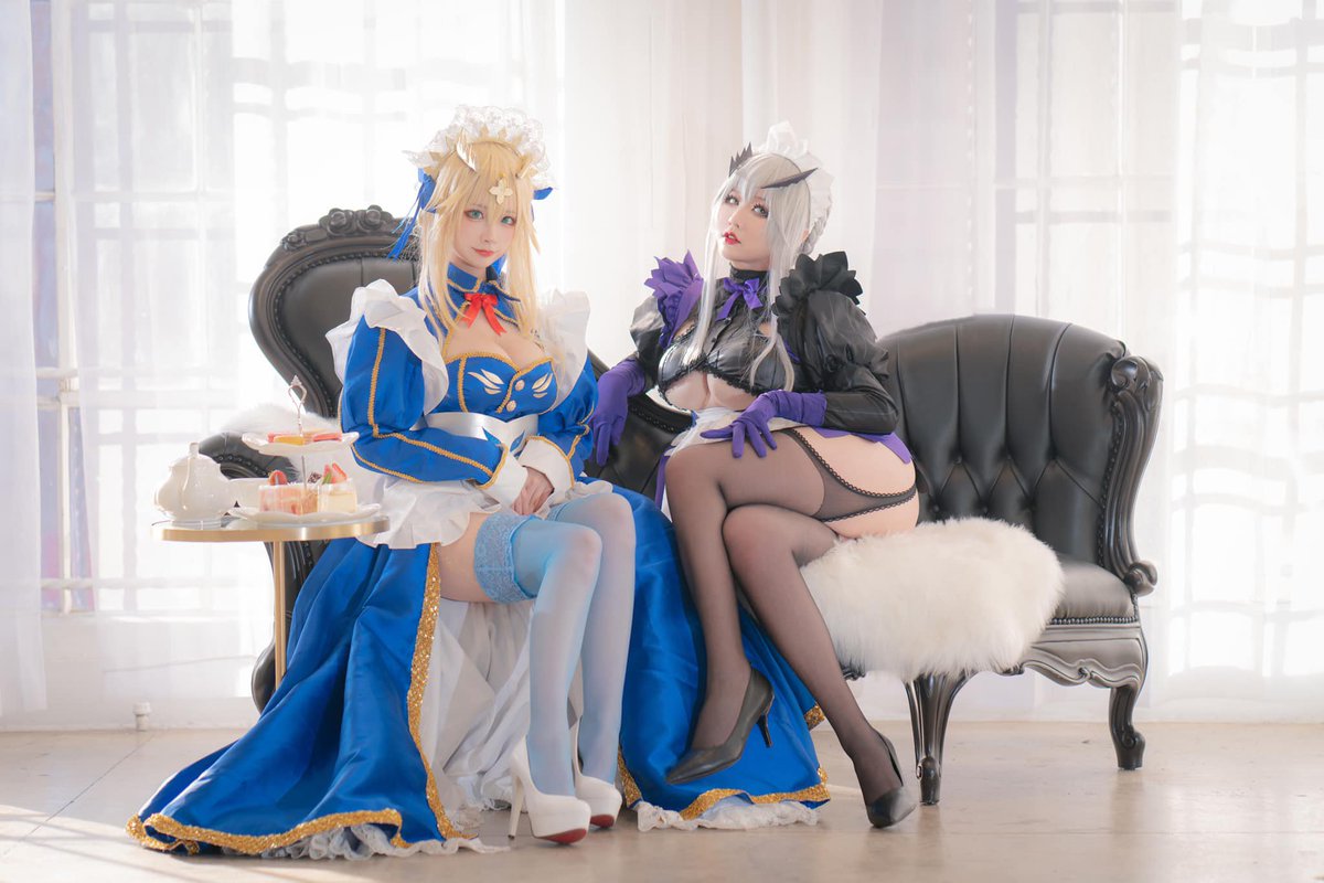 女仆们の茶会~ メイドのお茶会~ . photo by @kunagisa8492 Character: @Wendydydydy2: #白枪呆 #artorialancer #阿尔托莉雅 @nishi_24sakurai: #黑枪呆 #alter #altriapendragon from #fgo #fate #fategrandorder . . . . . . #fatecosplay #cosplay