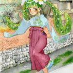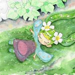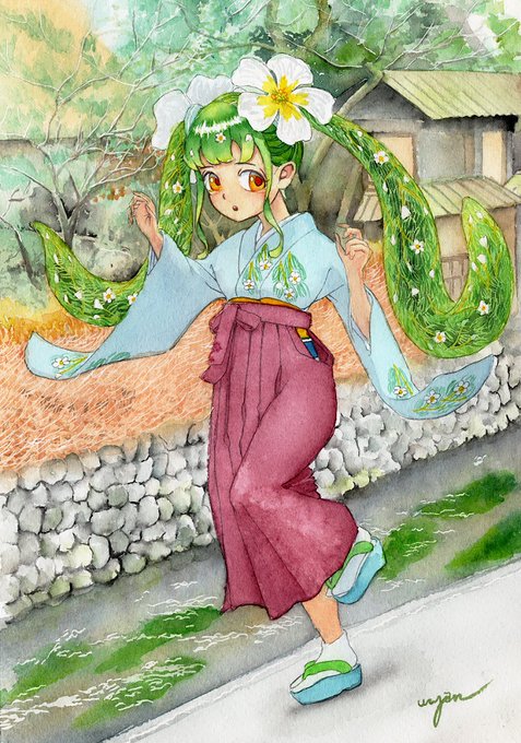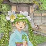「白石梅花藻姫と武家屋敷」 #白石梅花藻姫 が #片倉家中武家屋敷 の前で梅花藻の花の開花を喜んでるところを描いてみました。 #みちのくコミティア10 仙台出張にて頒布予定のポストカードです。 #オリジナルキャラクター #透明水彩 #watercolor #水彩画 #水彩イラスト #アナログイラスト