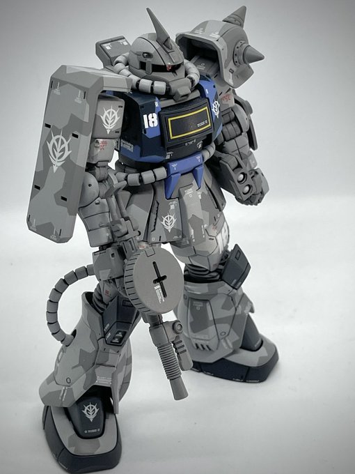 #白背景でも撮ってみた カラーレシピは引用元に😭 初めての迷彩、初めての缶スプリッター(スプリンター)塗装 缶スプレーは塗膜が厚くなりがちなので、やはり『段差』が出来ちゃいますね😭 #ガンプラ #GUNPLA #HGTO #ザク #デザートタイプ #砂ザク twitter.com/Gajumaru_MUSEU…