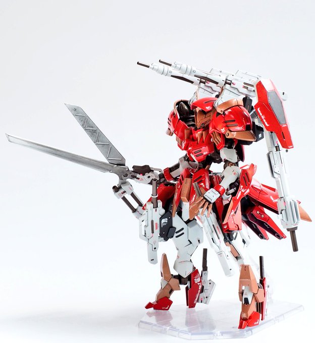#白背景でも撮ってみた #赤色のプラモデルなんでもOK ガンダムグレモリー・ファブル 赤ずきん(ハサミ)、七匹の子やぎ(セブンガン)、三匹のこぶた(3×3シールドビット)がモチーフの狼絶対◯すマンです← #ガンプラ #ガンダムグレモリー