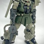 #白背景でも撮ってみた カラーレシピは引用元に😭 両肩をスパイク化、寄せ集めパーツで左前腕にショートバレルガトリング😭 缶スプレー×マスキングシートによるスプリッター迷彩・・・実は上腕と太腿だけ色の組み合わせが違います😏 #ガンプラ #GUNPLA #HGTO #ザク #デザートタイプ #砂ザク twitter.com/gajumaru_museu…