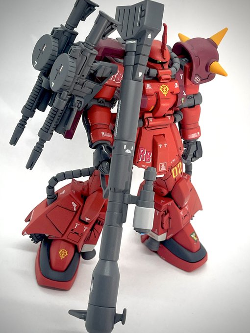 #白背景でも撮ってみた カラーレシピは引用元に😭 真紅の稲妻 ザクの皮を被ったゲルググとも云われる06R-2😭 (F2、HGMSV、オリジン系ザクのミキシング) ジャイアントバズ、ザクマシンガン×2、大きなランドセル/バーニア激燃え😏 #ガンプラ #GUNPLA #HGUC #ザク #高機動型ザク #ジョニー・ライデン twitter.com/gajumaru_museu…