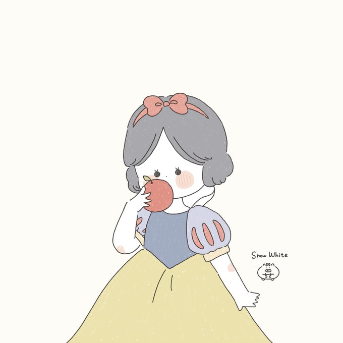 こんばんは✨ 今朝のクイズの答えは➀14歳 ディズニープリンセスの中では最年少だそう🍎 しかし、グリム童話の原作では白雪姫は7歳設定です💦 小1…www 今日もありがとうございました👼✨ #絵描きさんと繋がりたい #みんなで楽しむTwitter展覧会 #絵描きさんフォロバ100 #白雪姫 #童話