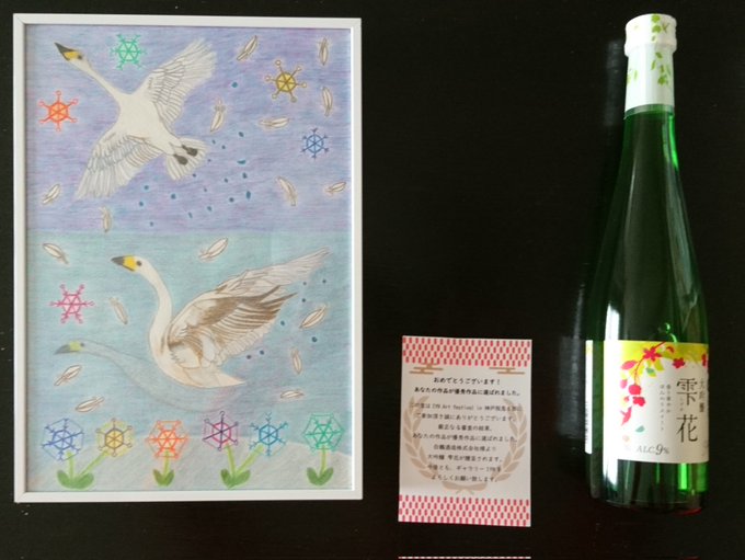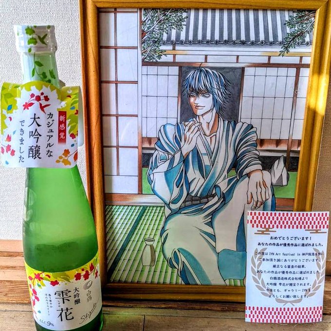 「ご報告」 この度神戸阪急第8部に展示応募した作品が幸いなことに「白鶴賞」頂きました👏👏👏 選ばれた実感ありませんが何て言うかありがとうございます( T∀T) 白鶴酒造様からお年玉プレゼントとして大吟醸届きました‼️ 今夜早速飲みます🍶 #絵描きさんと繋がりたい #白鶴賞 #白鶴