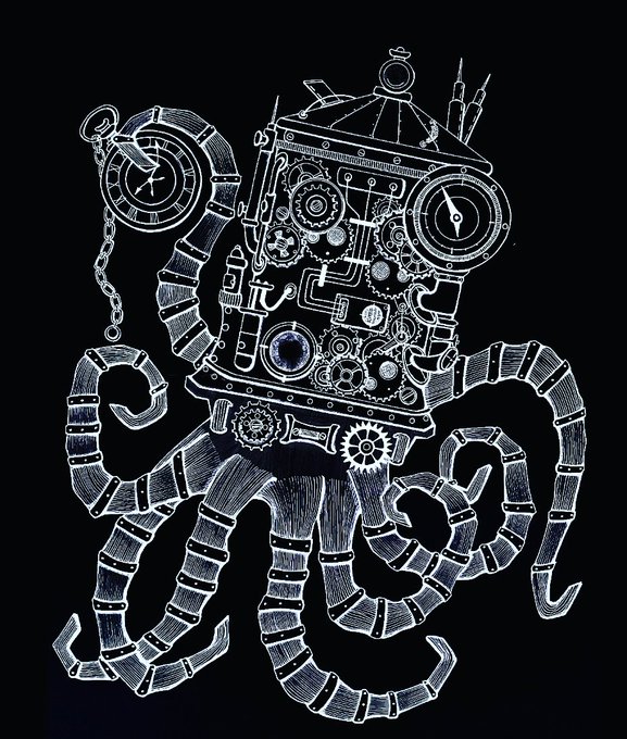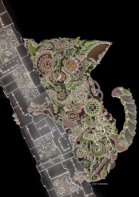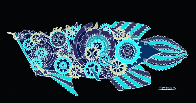 お疲れ様でした✨✨ また今週も頑張りましょ💪 #歯車イラスト #スチームパンクイラスト #フトアゴヒゲトカゲ #ペン画 #白黒反転 #絵師さんとつながりたい #作品を見てくれてありがとう