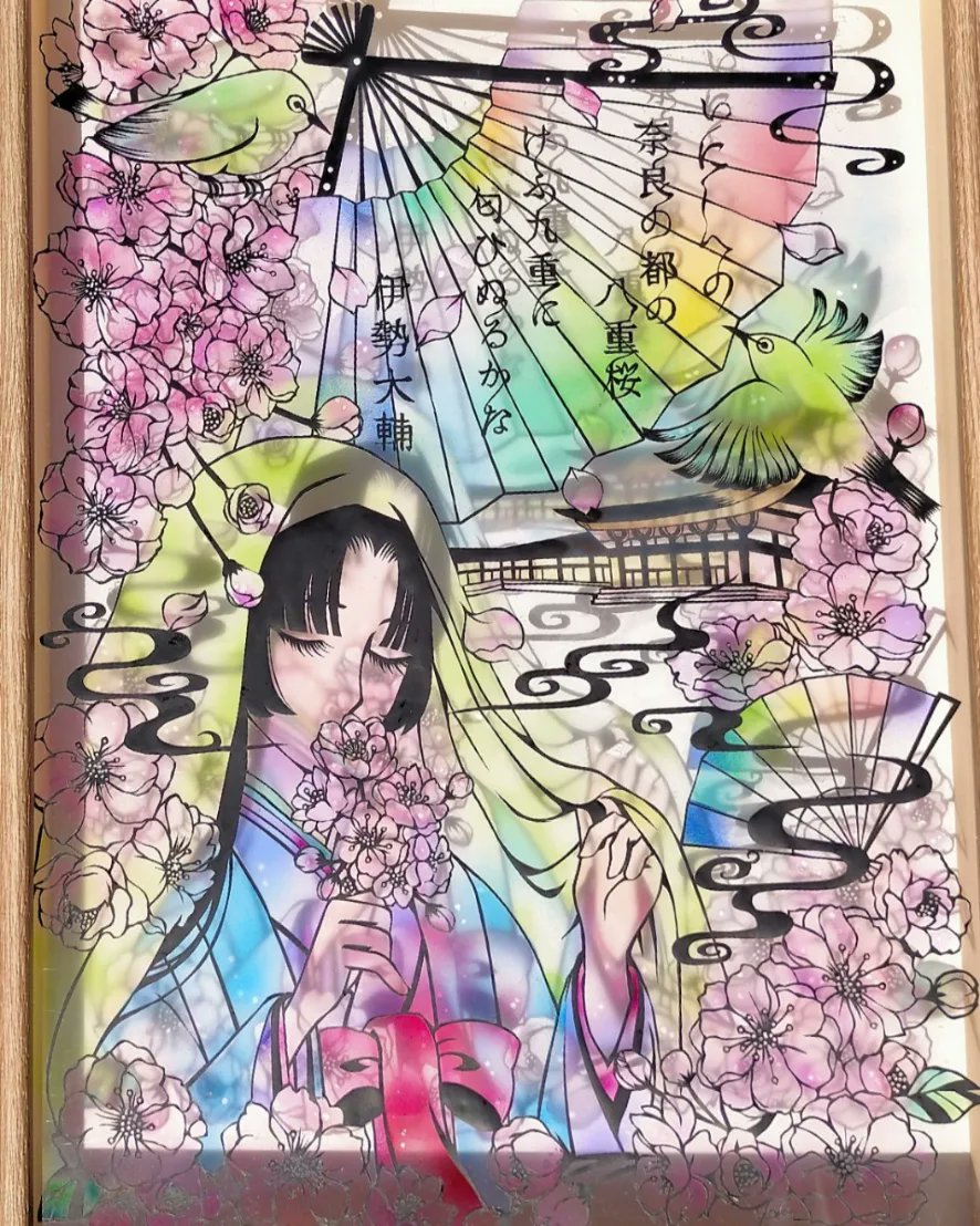 持統天皇 「はるすぎて 夏きにけらし 白妙の ころもほすてふ 天のかぐ山」 香具山に干された衣を見て 夏が来た事を感じている歌です 現実は猛暑ですが・・・(笑) #夏の創作クラスタフォロー祭り #切り絵 #百人一首