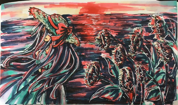 百均のペン8色で描いた…! 百均すげぇ…! 〜ひまわりと女の子〜 (浮上しないって言ったけどこれだけは、これだけは投稿するっ!) #絵描きさんとつながりたい #絵描きさんと繋がたい #絵柄が好みって人にフォローされたい #絵柄が好みって人がいればいいなぁ #イラスト #百均 #アルコールマーカー