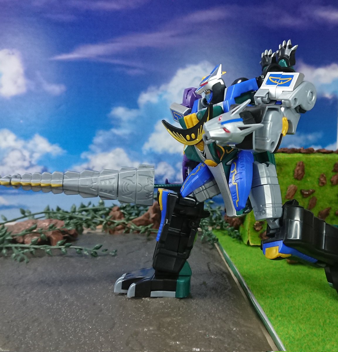 #夜のフィギュア撮影会 3/4 お題 『必殺』 #百獣戦隊ガオレンジャー #SHODOSUPER #楽しく玩具撮影中 #百獣猛る Quest41:ガオハスラーロッドブレイクモード 破邪聖獣球!邪気玉砕!!