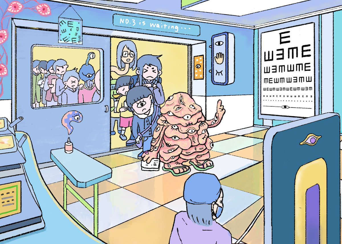 Endless eye test なかなか終わらない視力検査 #イラスト #art #イラスト好きな人と繋がりたい #秋の創作クラスタフォロー祭り #絵柄が好みって人にフォローされたい #妖怪 #百目