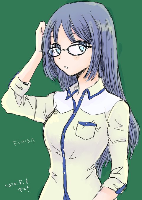 #アリスギア #百科文嘉生誕祭 #アリスギアお絵かき お誕生日おめでとうございます。 きっとこの衣装が報酬で来るだろうと。 ふみふみ似合うってバイブスぶちアゲっしょ! ってことで描きました。3枚目であまりにも違う人になったので下手ながらメガネ描きました。やはり本体はそこか。