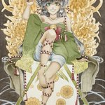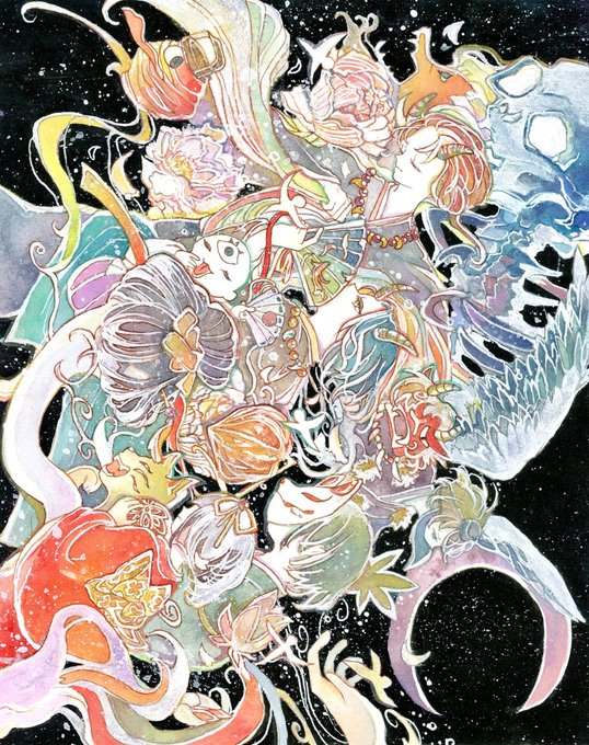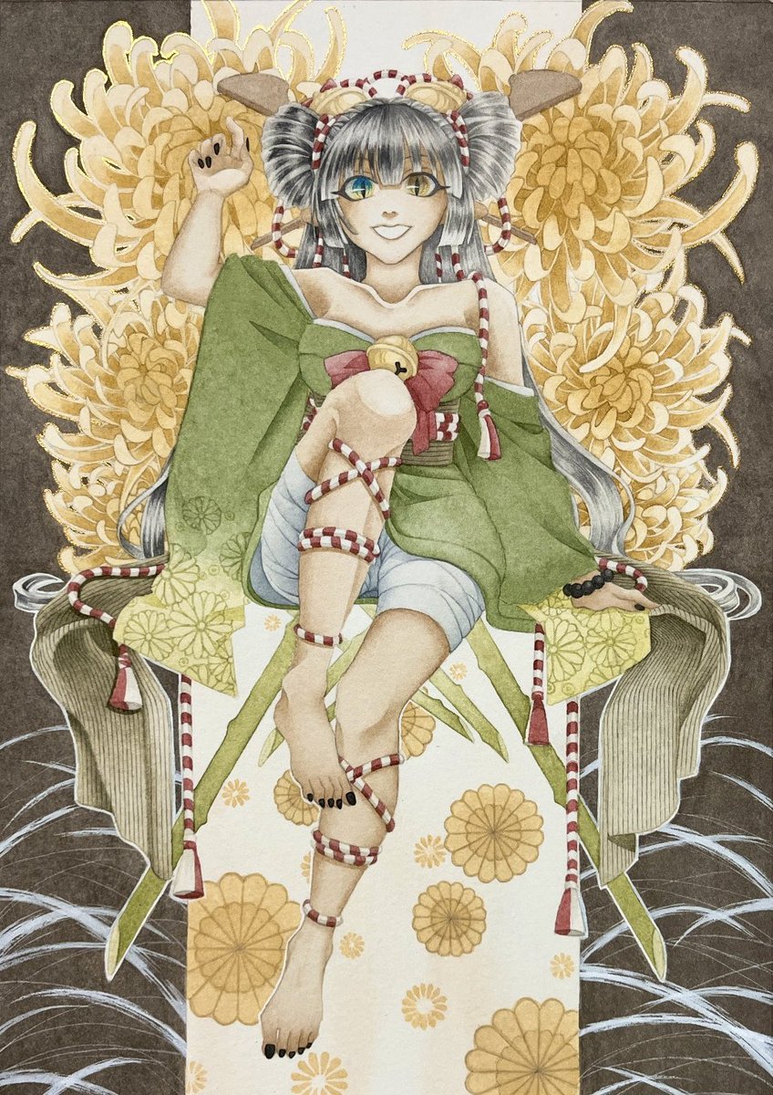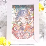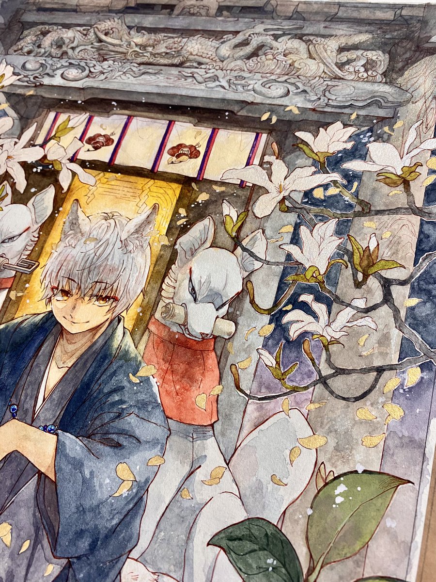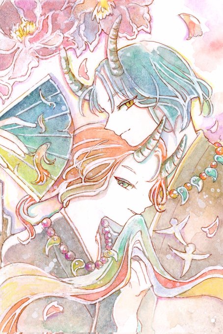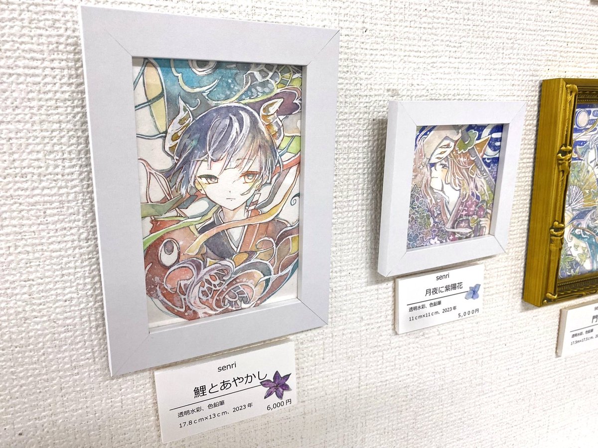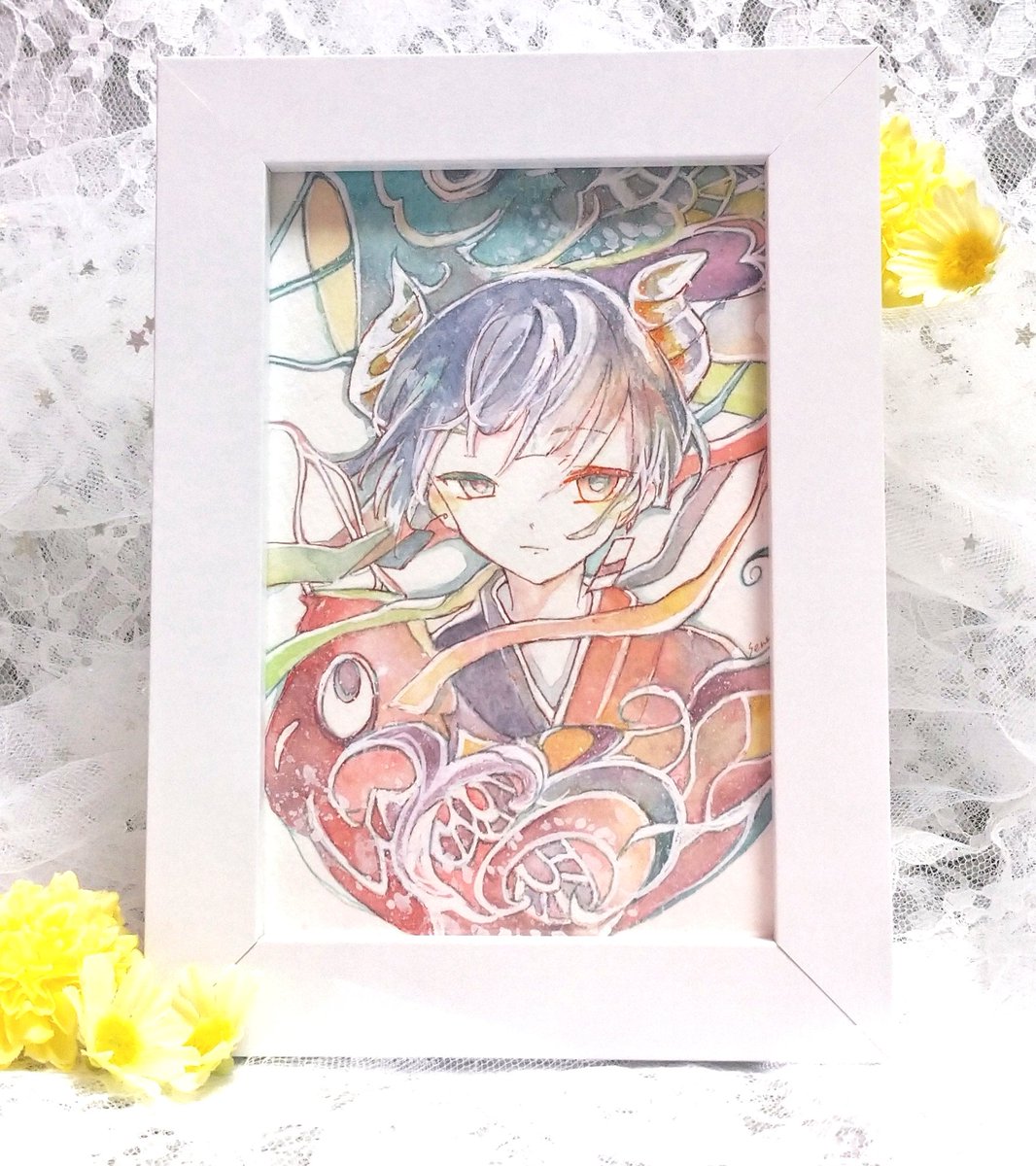 【百花繚乱展額装作品】 「鯉とあやかし」 鬼の男の子を描いた作品。 男の子の健やかな成長を願い 掲げられる鯉のぼりは 魔除けの意味があり、 あやかしの男の子は いわば「払われる側」なので その表情から色々 想像してもらえると いいなとおもって描きました。 (リプにつづく) #百花繚乱展春 twitter.com/senri_sugar/st…
