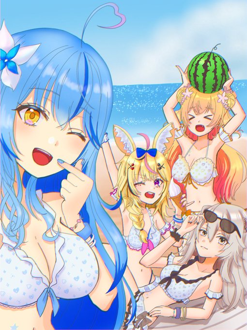水着のねぽらぼサマー🏖 今日のホロサマライブ楽しみだ〜!!✨✨ #ホロライブサマー2022 #皆で観ようホロサマライブ #LamyArt #ししらーと #絵まる #ねねアルバム #ねぽらぼ