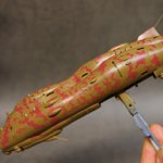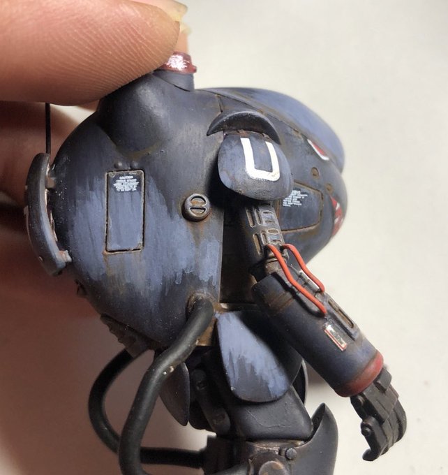 #皆様の迷彩塗装を見せてください 私がマシーネンで迷彩塗装するときのテーマは「刷毛塗り感」です。今回の写真は作業途中の写真ですが、筆の跡をあえて残し、手作業感を出すようにしてます。筆ムラは嫌われますが、筆塗りでしか出ない筆ムラを活かすのも楽しいものです(^^) #マシーネンクリーガー