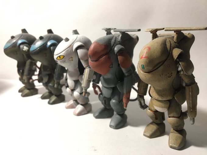 #皆様自慢の筆塗り模型を見せてください 自慢にもなりませんが筆塗り楽しい🥰 グフとカプリコはアクリルガッシュ、他はラッカーです #マシーネンクリーガー #戦闘メカザブングル #ガンプラ好きと繋がりたい #ターナー #アクリルガッシュ