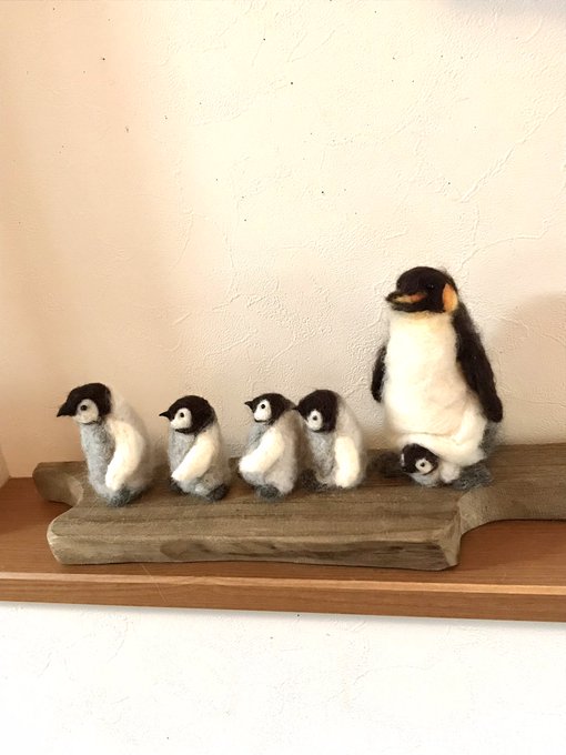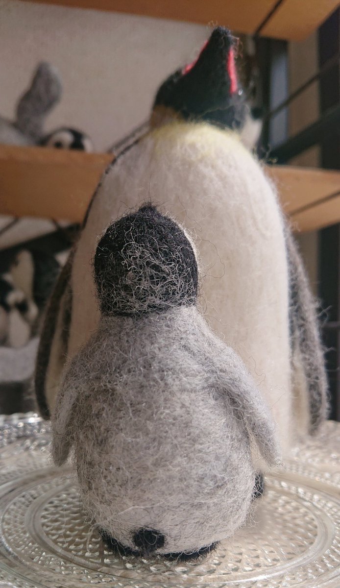 パパお腹すいたよ~💦 こぺん軍団の1人は以前作ったエンペぱぱと並べた時に餌の催促をしてる様なポーズをイメージしています✨ 並べて自己満足浸る午後ですw #羊毛フェルト #エンペラーペンギン #皇帝ペンギン