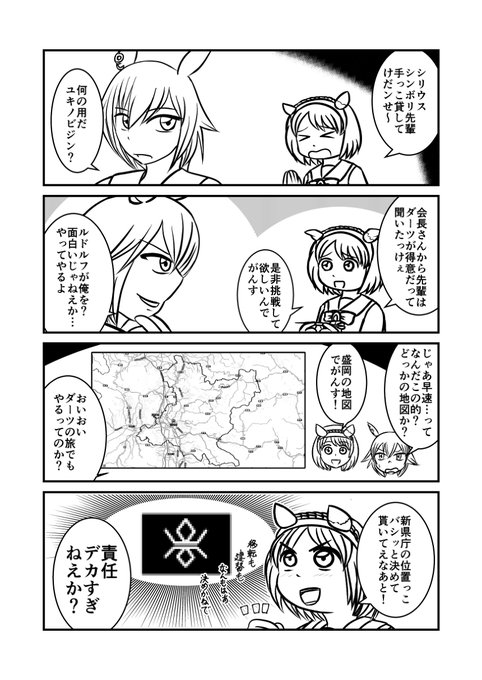 愉快なユキノビジン漫画017 大一番(盛岡) #ユキノビジン(ウマ娘) #ウマ娘プリティーダービー #シリウスシンボリ(ウマ娘) #盛岡市 #岩手県 pixiv.net/artworks/10361…