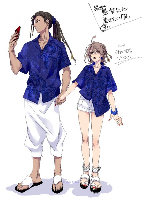 ジャミ監♀ (オアシスデートすることになった🐍🌸、服も何もかも捏造だよ) 「………なんの反応も無いと 死ぬほど恥ずかしいだけなんですけど」 「………………俺が 居ない所では 絶対にそれを着るんじゃないぞ(ド低音)」 「わかってますよ……」 #twstプラス #監ちゃんに着せたい服