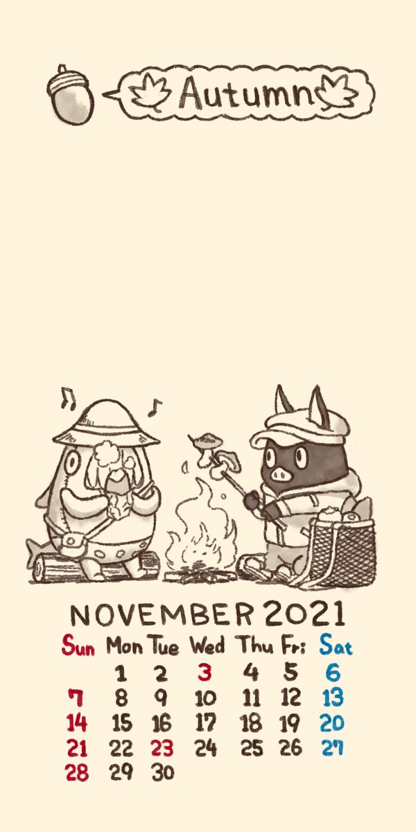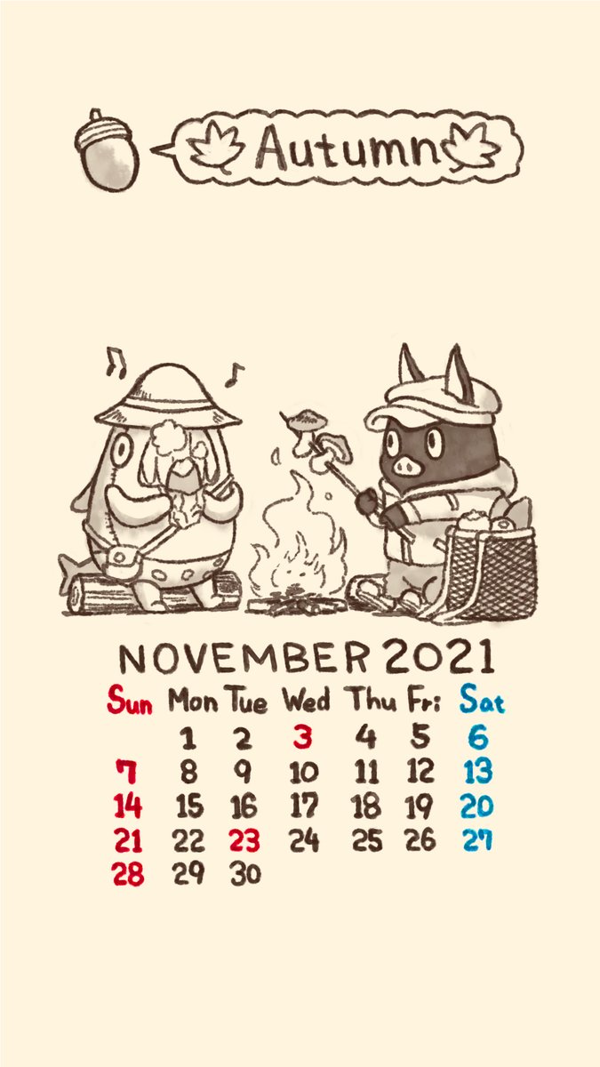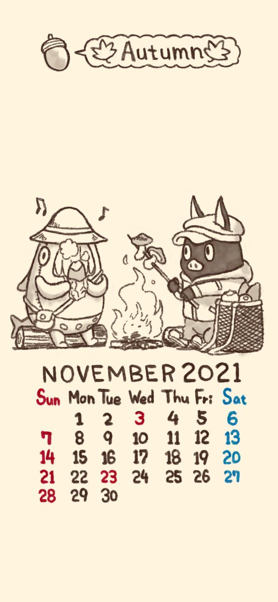 11月の壁紙カレンダー(修正版)です💦 監督が11月を31日までと勘違いをしておりました…。正しくは30日までです…💦 大変申し訳ありません🙇♂️🙇🙇♀️ 差し替えてお使い頂ければ幸いです🙏 #イナズマデリバリー #イラスト #監督
